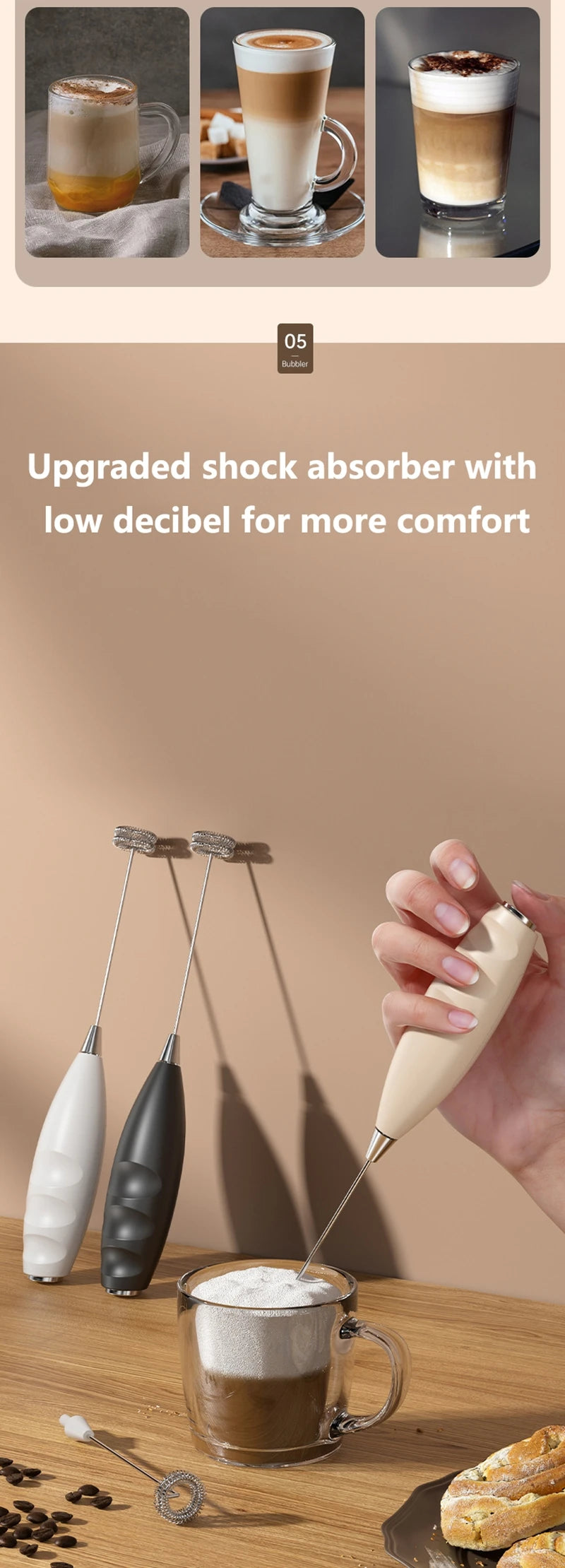✔ Espuma leite quente ou frio ✔ Mistura café, chocolate e bebidas instantâneas ✔ Bate ovos e claras ✔ Mistura cremes e shakes ✔ Uso doméstico e profissional